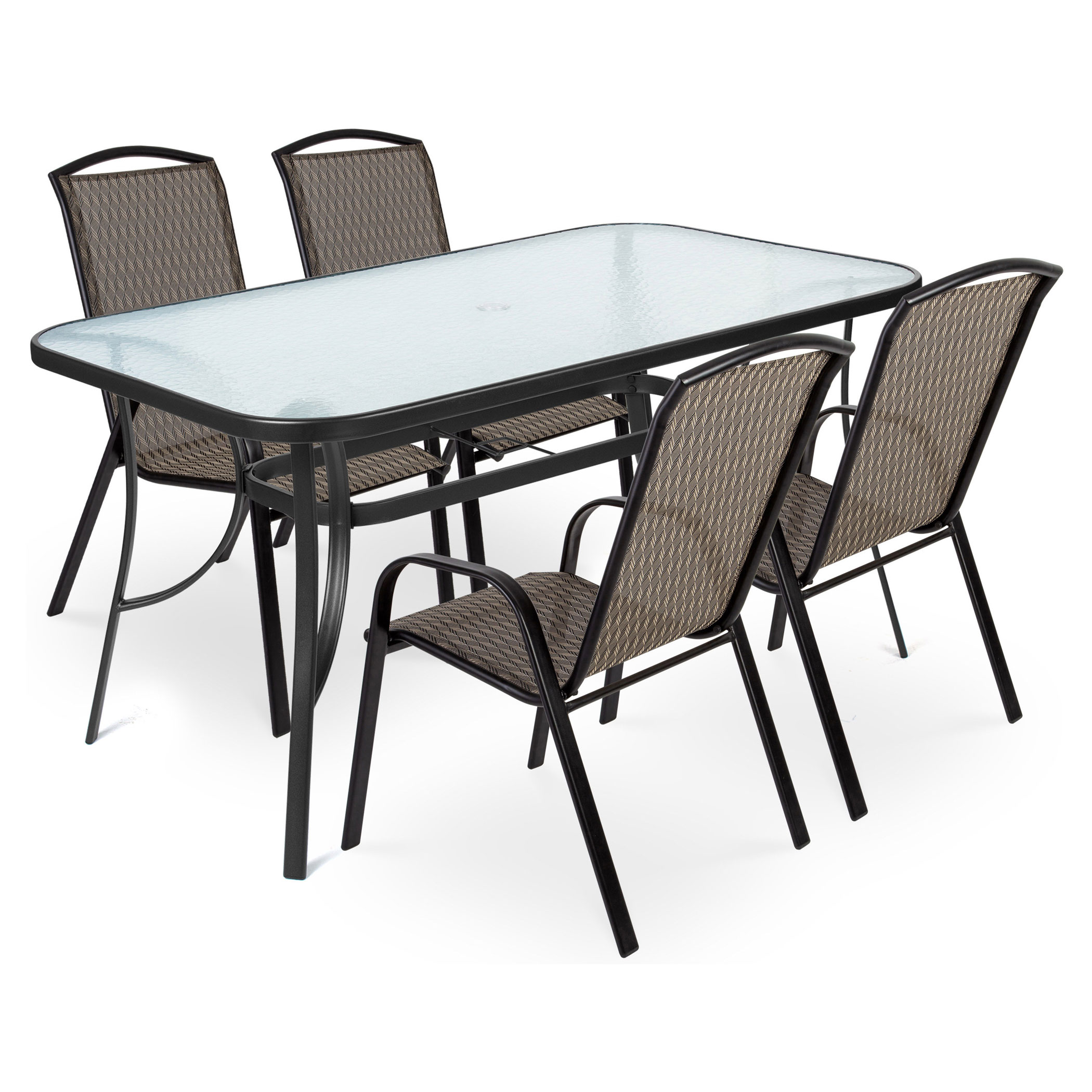 Ismerje meg a Fieldmann ELLA DARK kerti bútor szettet, mely az elegancia és időtlenség tökéletes ötvözete, kiváló választás kertekbe és teraszokra. Ez a kifinomult szett nemcsak esztétikailag vonzó, hanem kiemelkedően kényelmes is, megtestesítve a prémium minőséget és design eleganciáját a szabadban. Az ELLA DARK szett tartalmaz egy négyszögletes, 150 x 90 x 71 cm-es asztalt, amit keményített, edzett üveglapja és napernyőnyílása teszi teljessé. A szett része továbbá négy fémvázas szék, melyek szintetikus szövettel vannak borítva, és magasított háttámlával és karfával rendelkeznek. Az ELLA DARK székeinek méretei: 55 x 73 x 94 cm, maximális terhelhetőségük pedig 120 kg. A székek nem csak esztétikusak, hanem praktikusak is, hiszen egymásra helyezhetők, így helytakarékosan tárolhatók. Az impregnált felületkezelés és a minőségi anyagok garantálják a szett ellenálló képességét a szélsőséges időjárási viszonyokkal szemben, hosszú élettartamával pedig a Fieldmann ELLA DARK kerti bútor szett a prémium minőség és dizájn szinonimája.